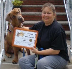 of age. Our program teaches your dog essential commands, including sit, stay, down, come, heel and wait. Time is also spent teaching your dog to walk like a lady or gentleman on a leash, without pulling or stopping. Once he passes his final exam, your dog will graduate with a diploma from Doggy Be Good! Basic Obedience is usually 4 to 5 sessions, but may be longer if need be. Our fee is assessed upon our free consultation. |